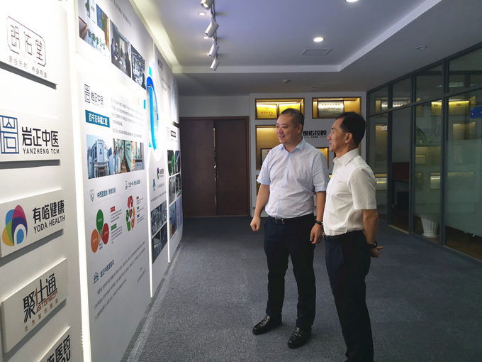 朗佑控股何董事長陪同參觀,并向陳放主席介紹了朗佑控股的整體情況。目前,朗佑控股旗下?lián)碛袔r正中醫(yī)、朗佑堂、聚仕通、朗佑醫(yī)藥、有嗒健康、有嗒大藥房、承醫(yī)堂、孝道文化傳播、朗佑品牌管理等多家子公司。