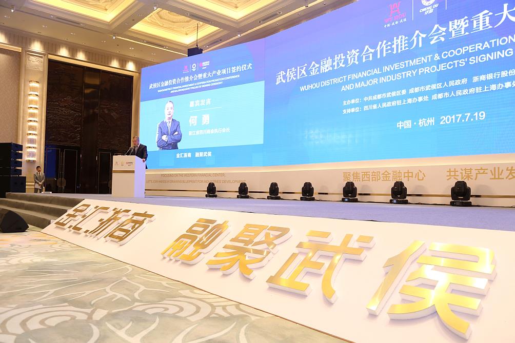 侯——成都市武侯區(qū)金融投資合作推介會(huì)暨重大產(chǎn)業(yè)項(xiàng)目簽約儀式”在杭州隆重舉行?;顒?dòng)現(xiàn)場集中簽約7個(gè)重大項(xiàng)目、總簽約額達(dá)375億元。