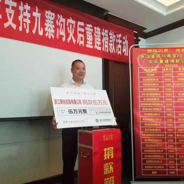 8月18日,浙江省四川商會(huì)在浙江嘉豐萬(wàn)悅城售樓中心舉行了支持九寨溝災(zāi)后重建捐款儀式。浙江省四川商會(huì)執(zhí)行會(huì)長(zhǎng)、朗佑控股董事長(zhǎng)何勇先生代表朗佑控股為災(zāi)區(qū)捐獻(xiàn)愛(ài)心,捐款伍萬(wàn)元整人民幣,為家鄉(xiāng)貢獻(xiàn)力量。