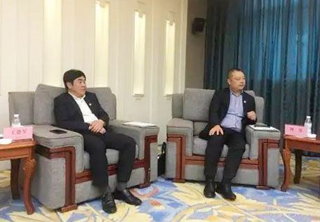 商會高級顧問王德軍(左)和執(zhí)行會長何勇(右)出席座談會