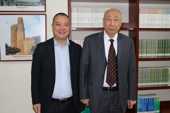 (中國工程院資深院士巴德年和朗佑控股董事長何勇合影留念)
