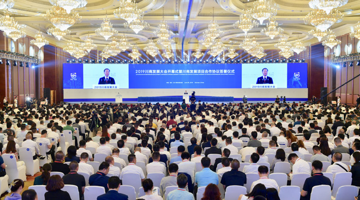 6月26日上午,2019川商發(fā)展大會開幕式暨川商發(fā)展項目合作協(xié)議簽署儀式在成都舉行,來自境內(nèi)外的1500多名川商、知名企業(yè)和商(協(xié))會負責人齊聚蓉城,共敘桑梓之情、共謀發(fā)展新篇。省委書記彭清華出席開幕式暨合作協(xié)議簽署儀式并致辭,省委副書記、省長尹力主持,省政協(xié)主席柯尊平出席,全國工商聯(lián)黨組副書記、副主席樊友山致辭。本次大會以“聚力川商新時代?擁抱四川新發(fā)展”為主題,由1場主體活動、多場專項活動組成,包括2019天府論壇、川商扶貧公益音樂晚會、2019川商發(fā)展大會投融資會和2019青年川商發(fā)展峰會。