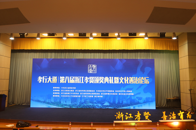 2019年9月29日,孝行大道丨第八屆浙江孝賢頒獎(jiǎng)典禮暨文化善治論壇在省人民大會(huì)堂舉行。本次活動(dòng)由浙江省委宣傳部指導(dǎo),浙江日?qǐng)?bào)報(bào)業(yè)集團(tuán)、浙江省老年事業(yè)發(fā)展基金會(huì)、杭州市江干區(qū)委、區(qū)政府聯(lián)合主辦,浙江省委常委、宣傳部長(zhǎng)朱國(guó)賢,省人大副主任姒健敏,副省長(zhǎng)成岳沖,省政協(xié)副主席張澤熙等領(lǐng)導(dǎo)出席了此次活動(dòng)。